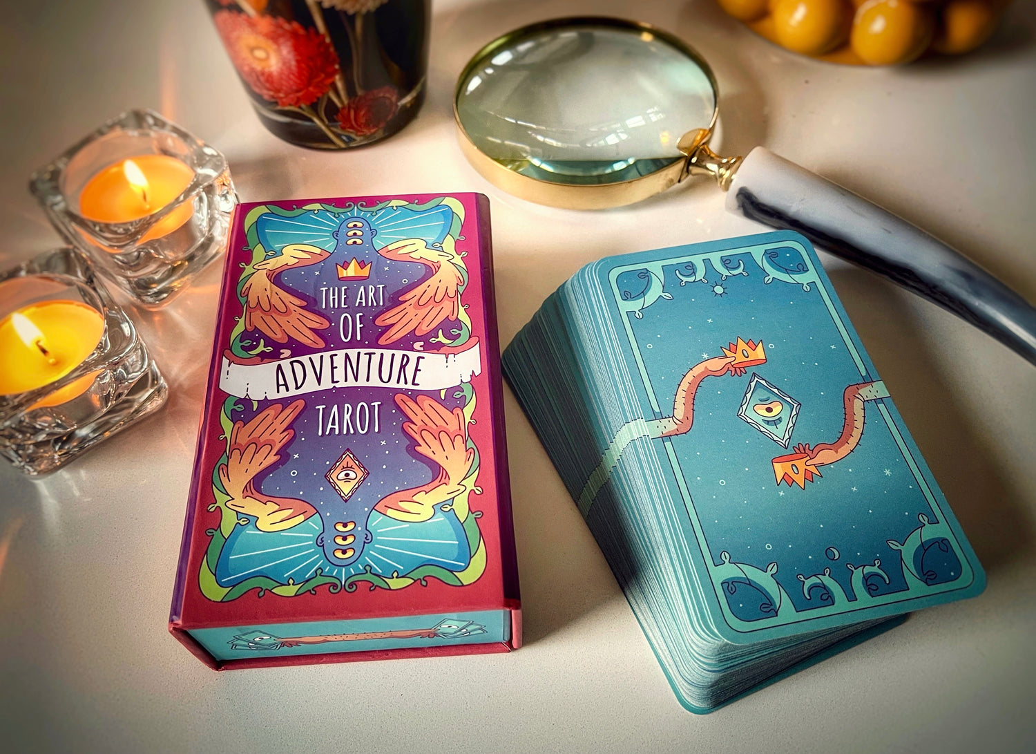 The Art of Adventure Tarot Deck dives deep into the subconscious, with a complex visual labyrinth that engages the mind, spirit and senses. The vibrant imagery was brought to life using carefully selected aesthetic and intricate detailing without compromising any essential symbolism and nuances of the classic Rider-Waite-Smith Tarot deck.